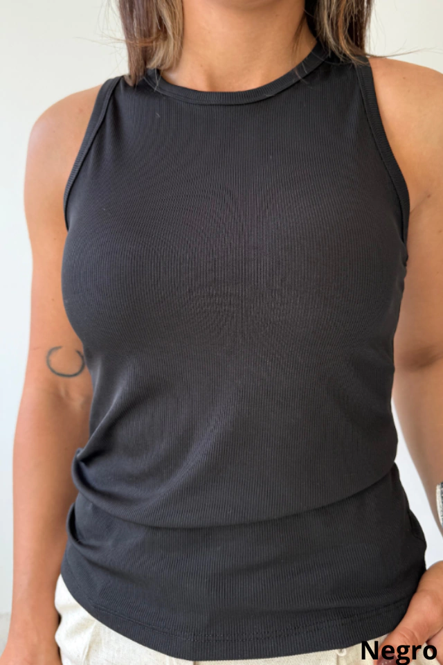 La musculosa está confeccionada con tejido de morley, conocido por su elasticidad, suavidad y capacidad de adaptarse cómodamente al cuerpo. 🌟 Es perfecta para climas cálidos y para usar en capas. 🌿✨